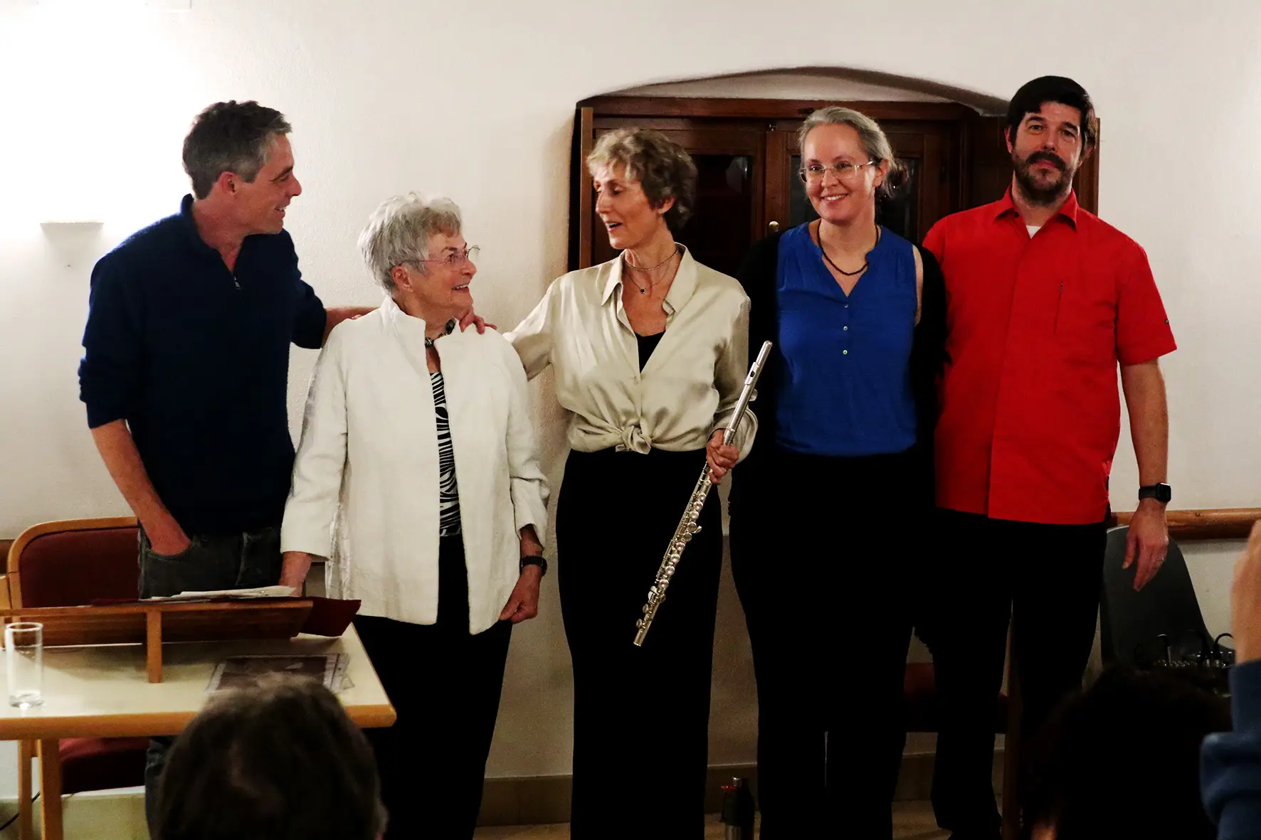 Gertrude Meitz und Philipp Traun lasen aus ihren Romanen, erzählen Geschichten aus ihrem Leben. Sophia Mae Tabassi samt Schwester und Schwager – Melissa und Thomas Jank – untermalten diese Erzählungen mit Musik. Familiäre Familienbilder..